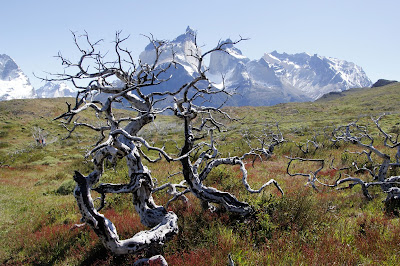 andando entre los troncos sin vida de las lengas y ñires que le dan un encanto